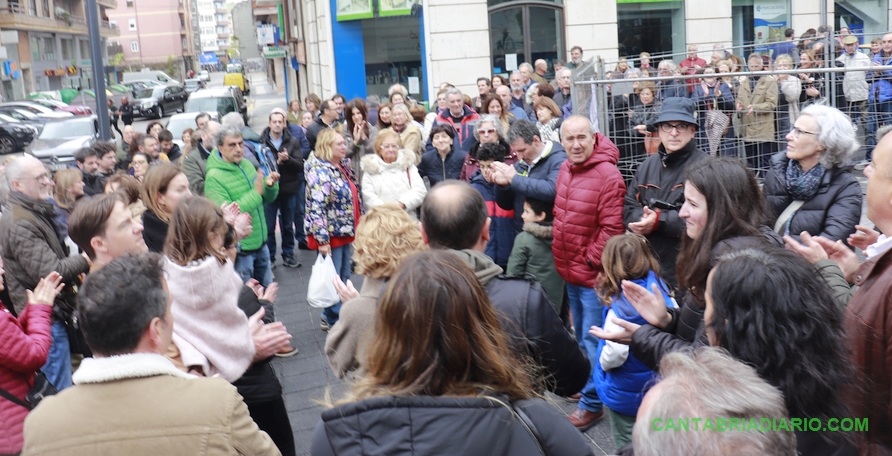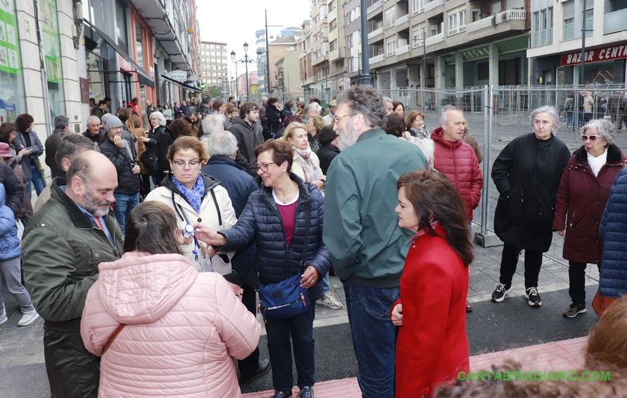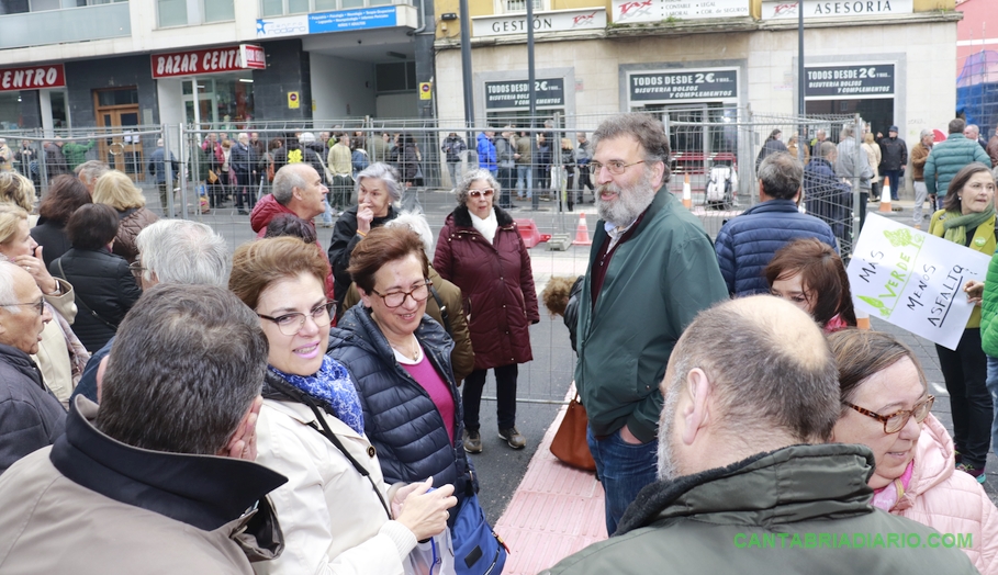 Vecinos y comerciantes de la zona de Julián Ceballos se han concentrado este sábado a las 13.30 horas en el cruce de la calle con Alonso Astúlez para protestar por las obras de remodelación de la céntrica vía de Torrelavega.