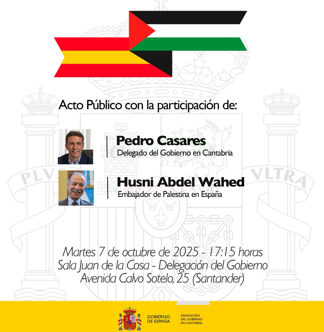 La Delegación del Gobierno en Cantabria ha organizado para este próximo martes, 7 de octubre, un acto público con el embajador de Palestina en España, Husni Abdel Wahed.