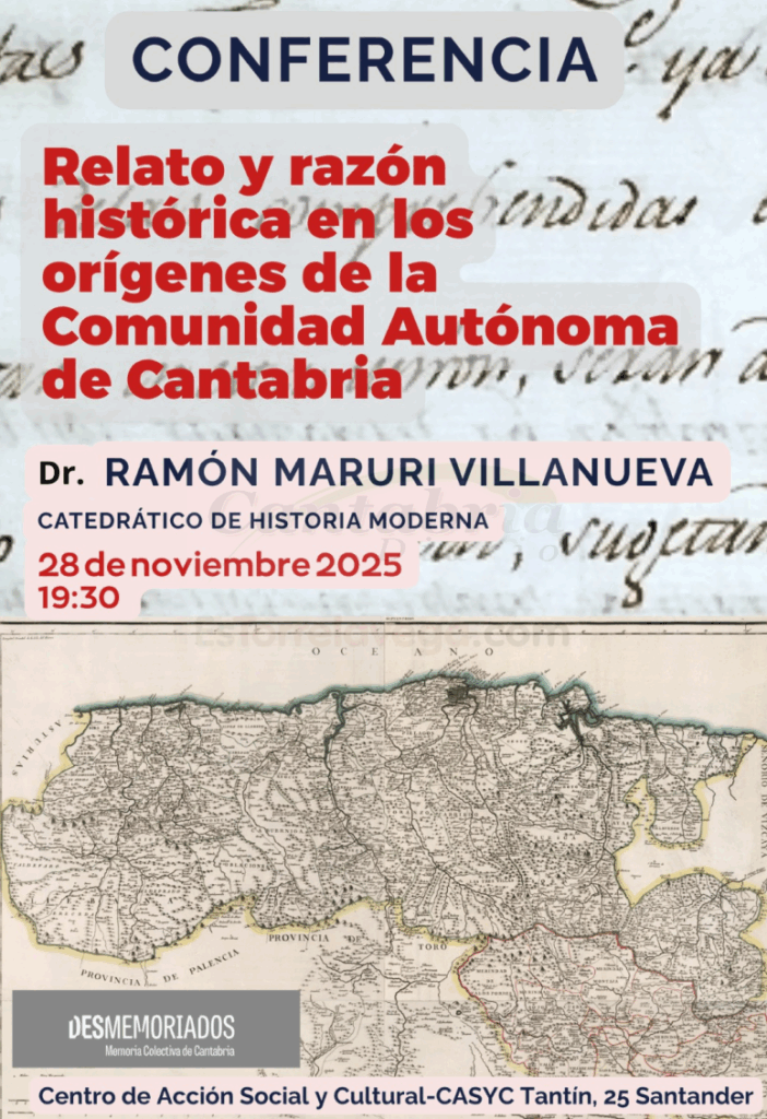 Ramón Maruri Villanueva, catedrático de Historia Moderna y Académico de la Real Academia de la Historia, ofrecerá este próximo viernes 28 de noviembre a las 19:30 horas, en el Centro Social y Cultural CASYC, la conferencia “Relato y razón histórica en los orígenes de la Comunidad Autónoma de Cantabria”. La entrada es libre hasta completar el aforo.