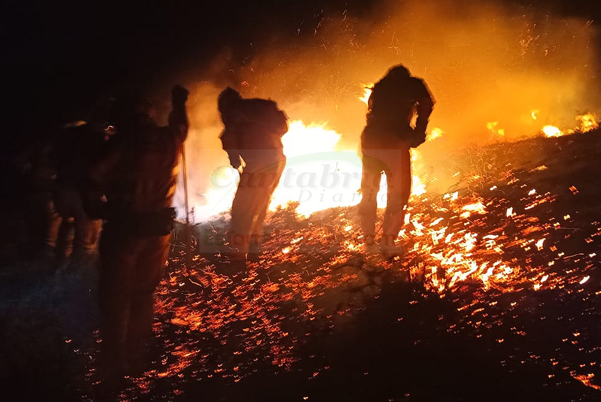 Bomberos forestales, bomberos del Gobierno y bomberos de Santander han trabajado en la extinción de ambos focos