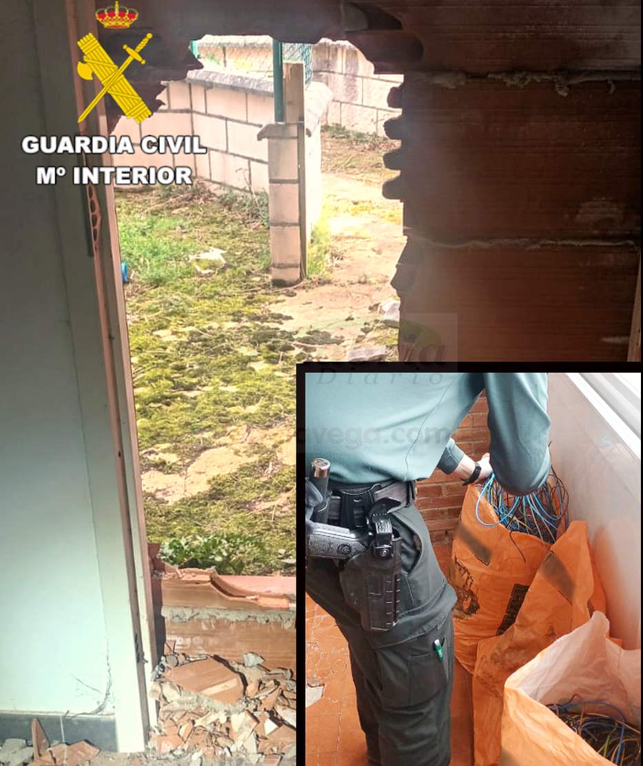 Gracias a la rápida intervención de una patrulla de la Guardia Civil, pudieron sorprender a estas dos personas dentro del edificio, y evitar el robo de casi 35 kilos de cableado de cobre del que habían hecho acopio.