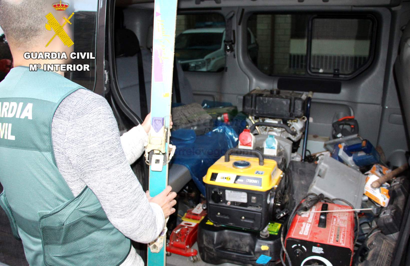En enero del pasado año, se cometió un robo con fuerza, mediante la realización de un butrón, en una propiedad situada en el término municipal de Cabezón de Liébana, donde sustrajeron abundante maquinaria y herramienta, entre ello, un grupo electrógeno industrial, gatos hidráulicos, soldador, sierras circulares, maletines con herramientas variada y unos esquís, valorado todo ello en unos 8.000 euros.