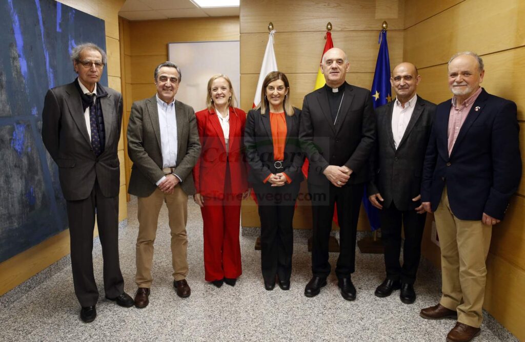 Buruaga, junto con la consejera de Presidencia, Isabel Urrutia, ha recibido en la sede del Ejecutivo cántabro a representantes de las instituciones que han impulsado la concesión de este título a Carlos Osoro: Arturo Ros, obispo de Santander; Manuel Ángel Castañeda, presidente del Ateneo de Santander; Ildefonso Calderón, responsable de la Asociación Amigos de Torrelavega; José Nicasio Gutiérrez, presidente de la Coral de Torrelavega, y Tomás Castillo, en nombre de la Sociedad Cántabra de Escritores.