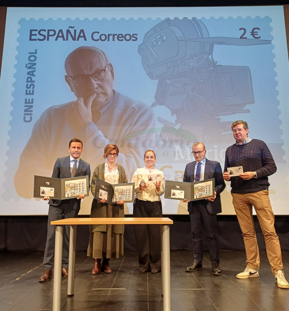 Santander, 20 de marzo de 2026.- Correos ha presentado hoy un sello dedicado al cineasta español Mario Camus dentro de la serie “Cine Español”, con el que se quiere rendir homenaje a uno de los realizadores españoles más destacados y reconocidos internacionalmente del siglo XX. Adaptó al cine y a la televisión con gran éxito conocidas obras de la literatura de nuestro país, entre las que destacan Fortunata y Jacinta, La colmena, La casa de Bernarda Alba, La forja de un rebelde oLos Santos Inocentes.