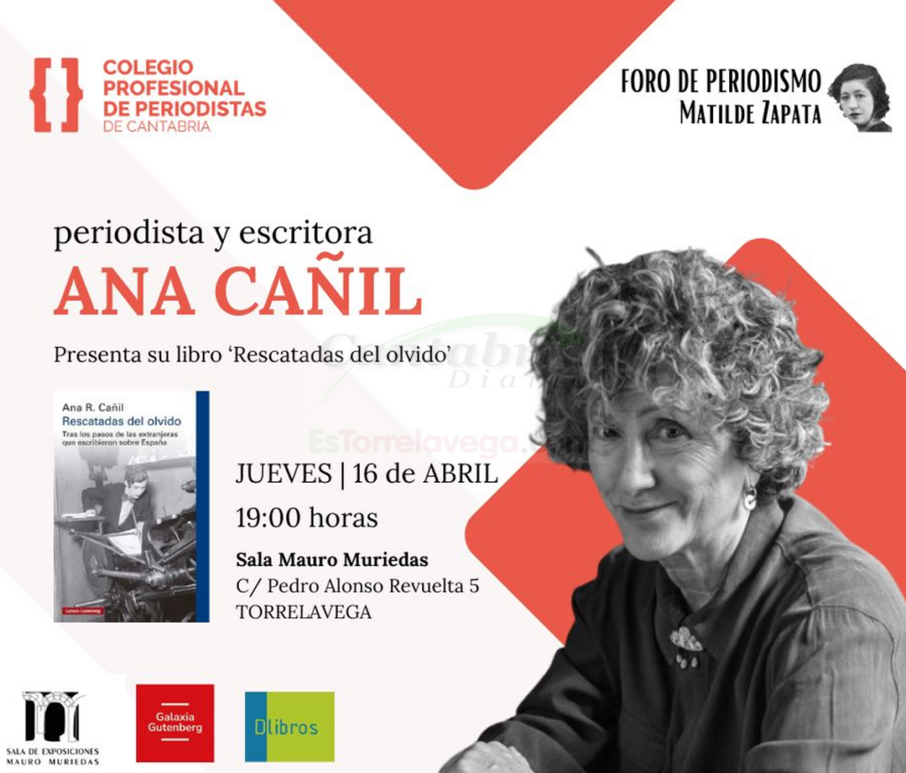 La Sala Mauro Muriedas acogerá el próximo jueves 16 de abril a las 19.00 horas la presentación del libro «Rescatadas del olvido», de la periodista y escritora Ana Cañíl. La obra, que llega a Torrelavega de la mano del Colegio Profesional de Periodistas de Cantabria, sigue los pasos de las extranjeras que escribieron sobre España, mujeres que llegaron a España en el convulso siglo XX, para cubrir la guerra civil o para recorrer un país posbélico.